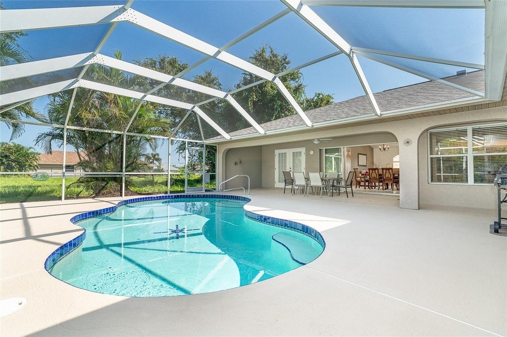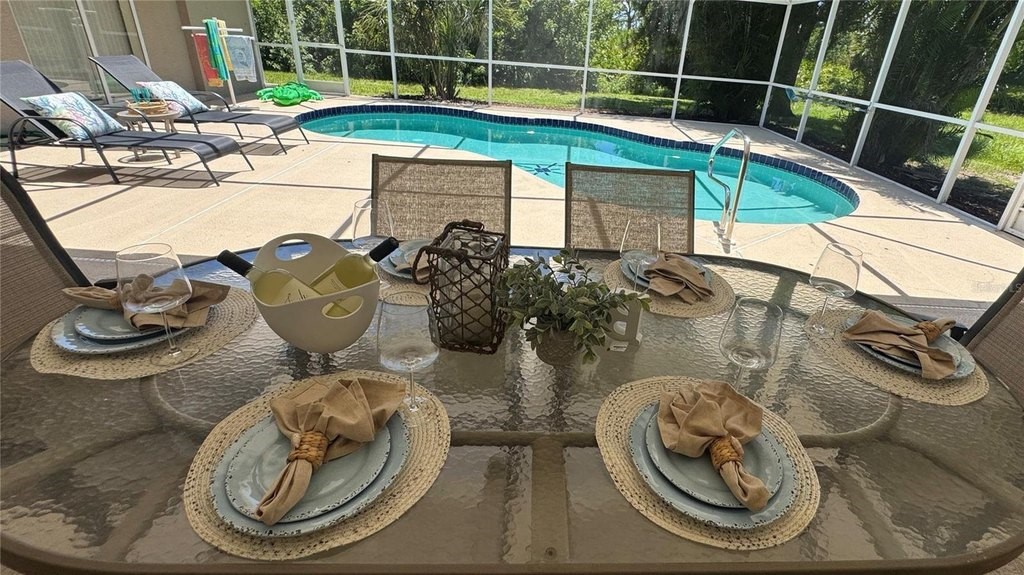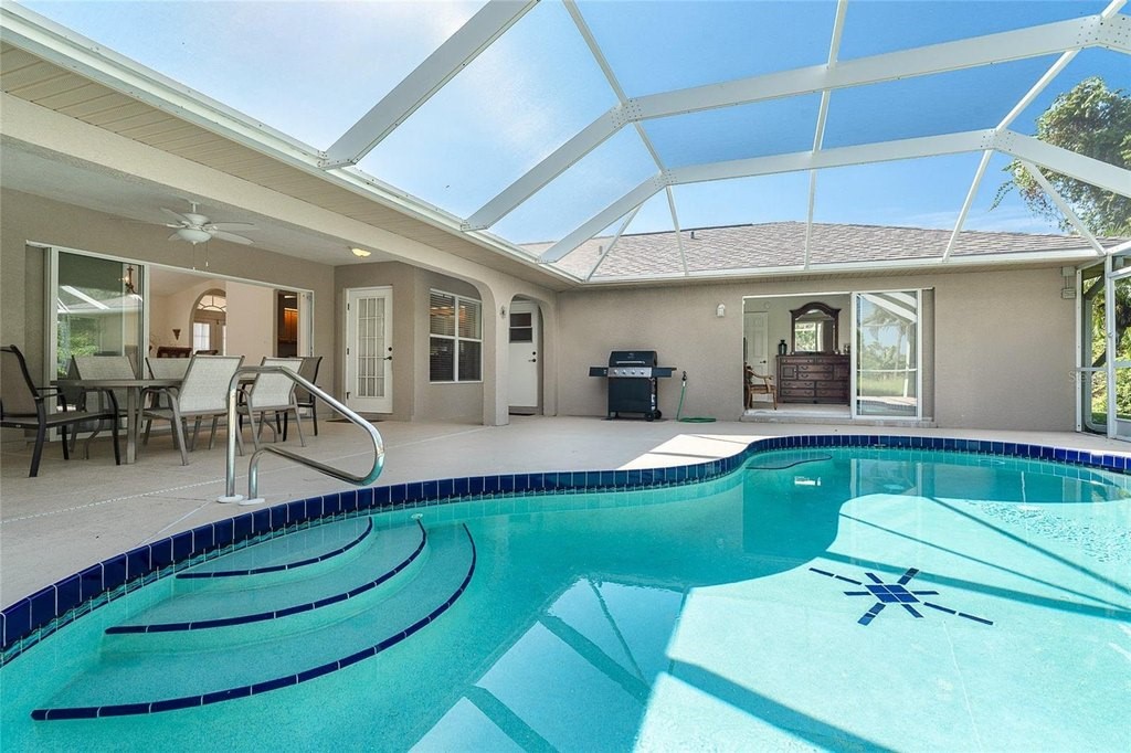 Turnkey Pool Home in Rotonda West – Minutes to Boca Grande Beaches! Welcome to your move-in ready 4 Bedroom, 3 Bathroom, 2-Car Garage pool home located in the sought-after golfing community of Rotonda West, nestled on the beautiful Cape Haze Peninsula. This fully furnished residence offers Florida living at its finest, just a short drive from the world-class beaches of Boca Grande and Englewood. This spacious home features a new roof in 2023, and an ideal open split floor plan with not one, but two master suites, each with private ensuite bathrooms, walk-in closets, and direct access to the screened-in, heated pool and lanai. One suite offers a king bed, the other a queen—perfect for guests or multi-generational living. Two additional guest bedrooms (each with twin beds and walk-in closets) share a full hallway bath with direct pool access, ensuring everyone has their own space and convenience. Entertain effortlessly with a formal living and dining area, or gather in the updated eat-in kitchen, complete with granite countertops, stainless steel appliances, and a breakfast bar—all with easy access to the outdoor oasis. Enjoy privacy and tranquility with a lush greenbelt behind the home, creating a peaceful backdrop for relaxing poolside or dining al fresco under the covered lanai. Offered fully furnished and turnkey, this property includes everything you need: TVs, indoor and outdoor furniture, kitchenware, linens, towels, pool floats, grill, bikes, golf clubs, and more—just bring your suitcase! Located in the heart of the Cape Haze Peninsula, you’ll be minutes from Gulf beaches, boating, championship golf courses, marinas, boutique shopping, and waterfront dining. Catch a game at CoolToday Park, enjoy the vibrant arts and culture of nearby Venice, or explore the historic village of Boca Grande just over the causeway. Why wait? Start enjoying the Southwest Florida lifestyle today in this beautifully maintained, ready-to-enjoy home.